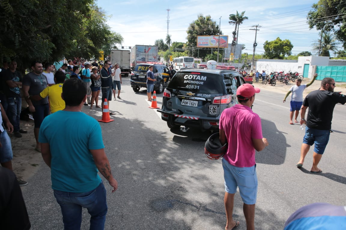 Os protestos ocupam os kms 17 e 19 da rodovia, em Itaitinga