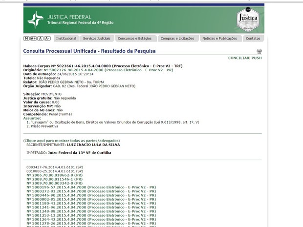 Pedido ao TRF foi feito por consultor de Campinas sem ligação com Lula.