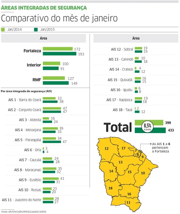 O número representa um aumento de 8,5 % no índice de assassinatos no Estado