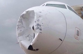 A aeronave passou por uma tempestade de granizo e fez um pouso de emergência