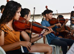 42 crianças e adolescentes do projeto Ação Social pela Música