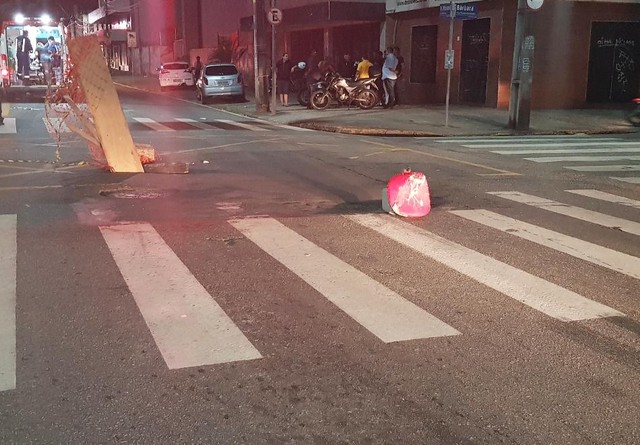 Com o impacto, o capacete do homem saiu e a ele bateu a cabeça contra a pista.
