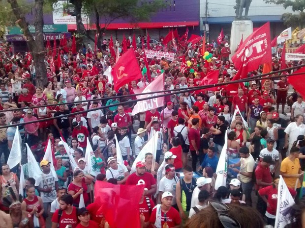 Protesto realizado por sindicatos concentra público na Praça da Bandeira.