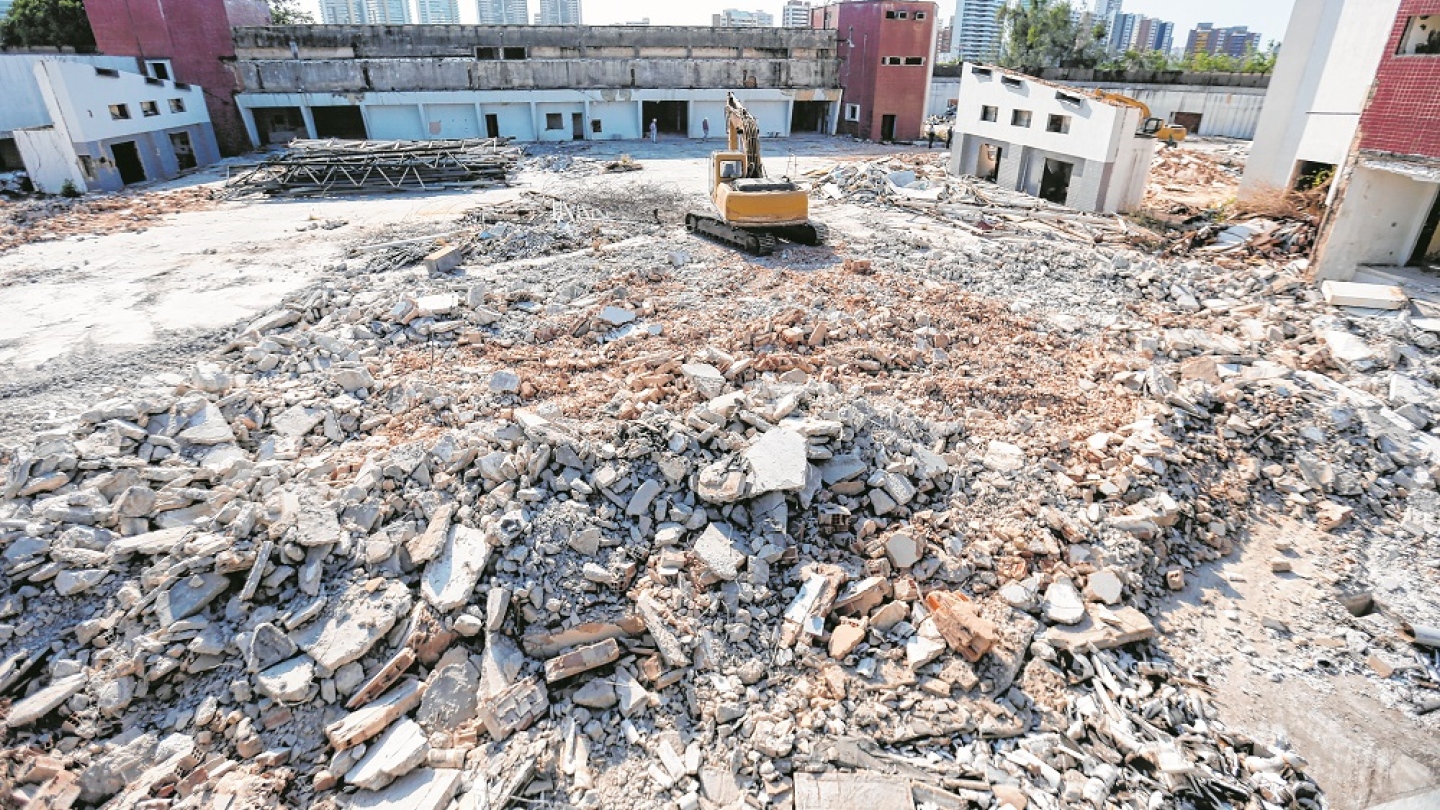 Concreto e alvenaria provenientes da demolição do antigo Centro de Convenções…